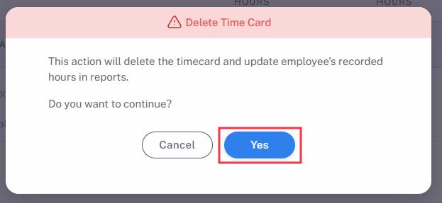3. Select Yes on the warning message to continue, then the time card will be removed.