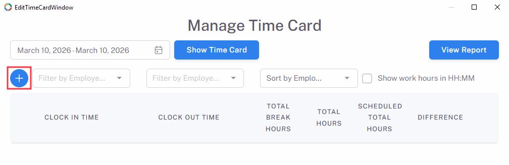 1. On Manage Time Card page, click “+” button