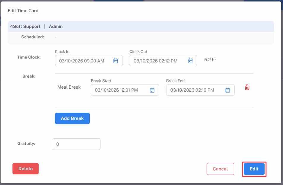 3. Click Edit to save the time card
